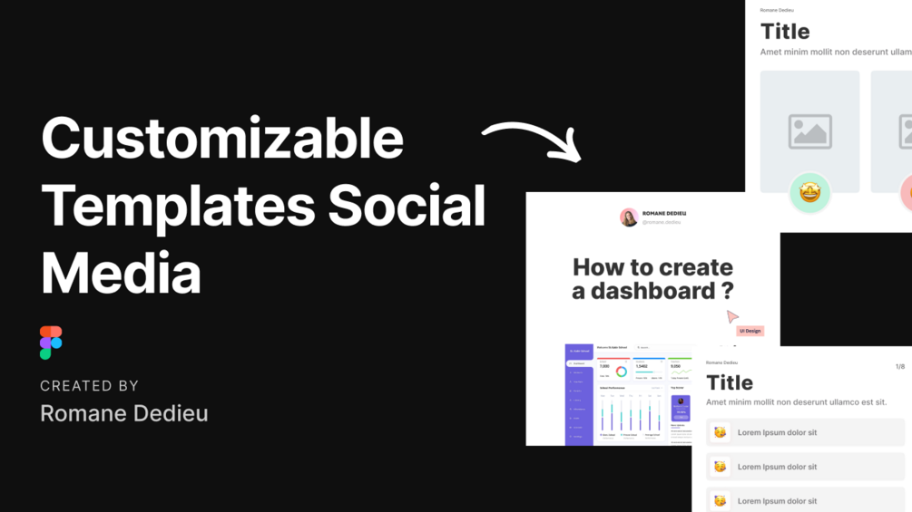 Customizable Templates Social Media - is a Figma library with 10+ templates to build posts for your social networks. They are built with components and auto-layout to give you a great possibility of customization..
